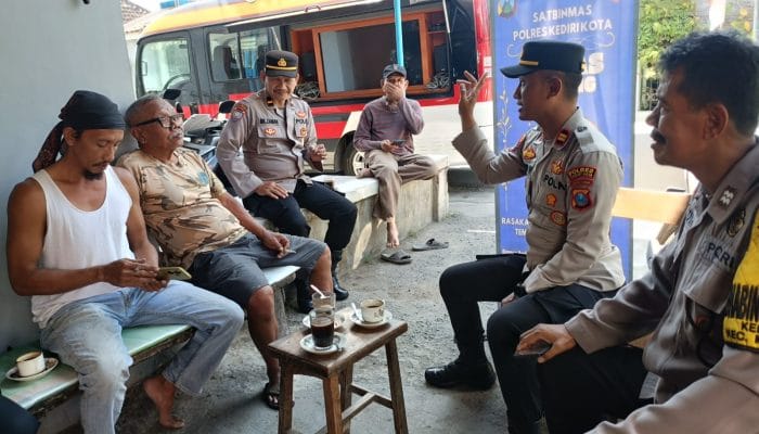Guna meningkatkan kesadaran masyarakat dalam menjaga keamanan dan ketertiban di lingkungan sekitar, personel Satuan Pembinaan Masyarakat (Satbinmas) Polres Kediri Kota Polda Jatim melaksanakan kegiatan yang bertajuk “Gas Kopling” (Kopi Keliling).