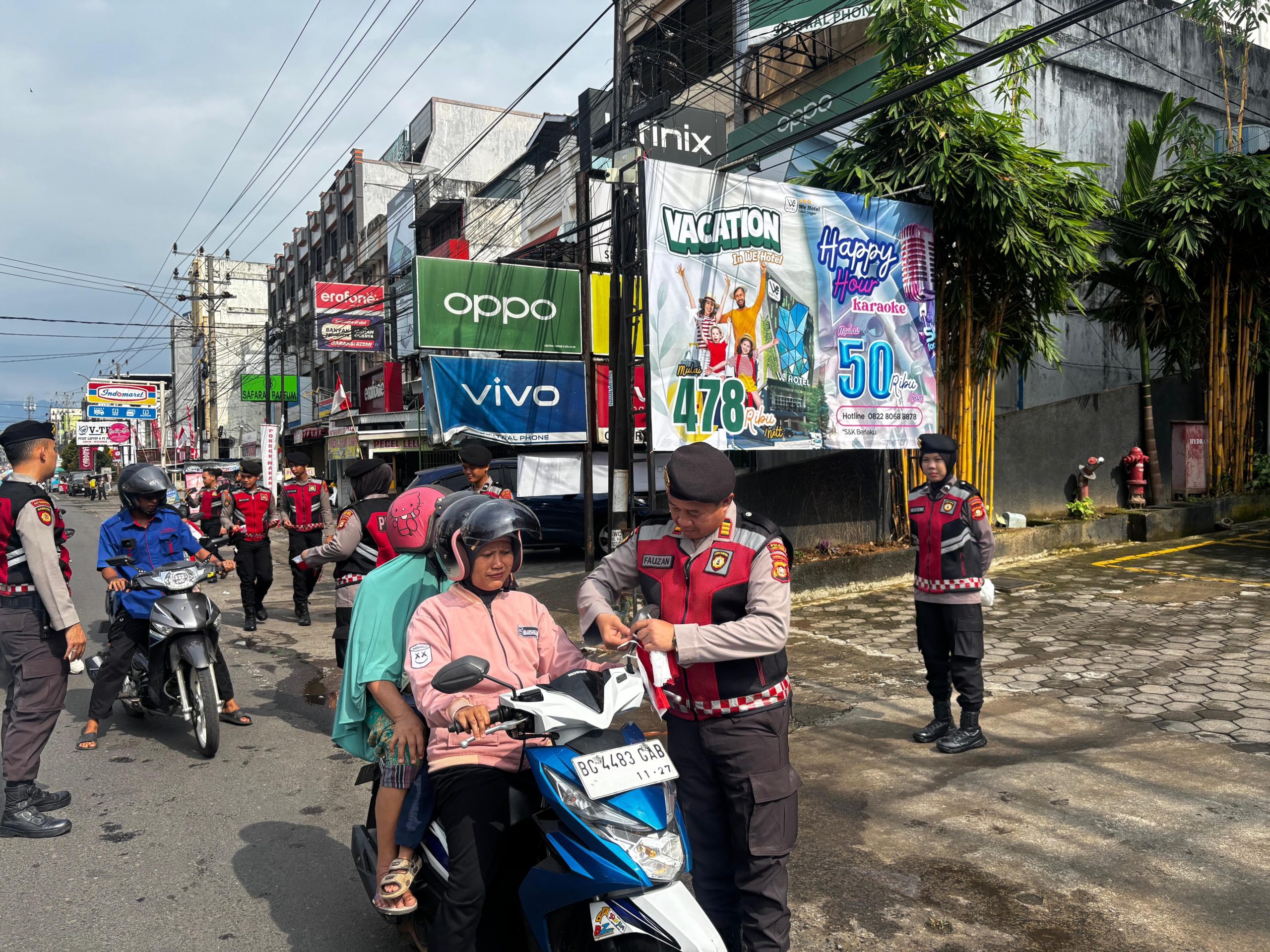 Aksi simpatik dalam rangka memeriahkan HUT Kemerdekaan RI ke-80 ini dipimpin langsung oleh Kepala Satuan Samapta (Kasatsamapta), AKP Fauzan Aziman. Bersama anggotanya, ia dengan ramah menghampiri para pengendara mobil dan sepeda motor untuk menyerahkan bendera.