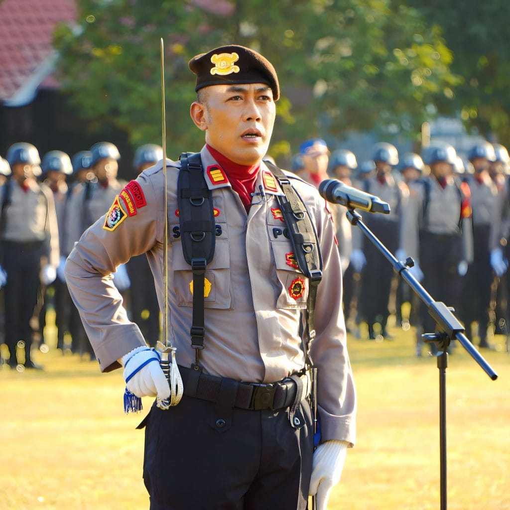 Kekuatan barisan upacara mencerminkan soliditas institusi, terdiri dari peleton Pejabat Utama, Perwira Menengah, Perwira Pertama, Bintara, ASN, serta disempurnakan oleh satu batalyon gagah berani dari 247 siswa Diktukba Polri T.A. 2025.