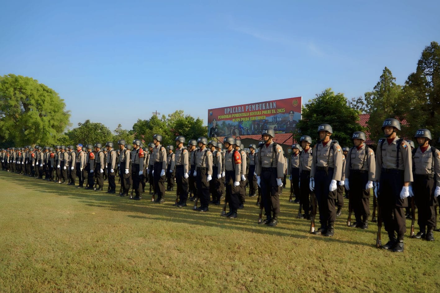 Gema sejarah perjuangan korps Bhayangkara juga dirasakan di Lapangan Tribrata, Sekolah Polisi Negara (SPN) Polda Jatim, Kamis (21/8/2025) pagi.
