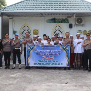 Palangka Raya, DOMAINRAKYAT.com- Polresta Palangka Raya menggelar kegiatan pembagian takjil kepada masyarakat dalam rangka Bulan Suci Ramadhan 1447 Hijriah, Kamis (26/2/2026) sore. Kegiatan tersebut dilaksanakan di Jalan Raflesia, tepatnya di kawasan PPIQ Miftahul Falah, Kota Palangka Raya.