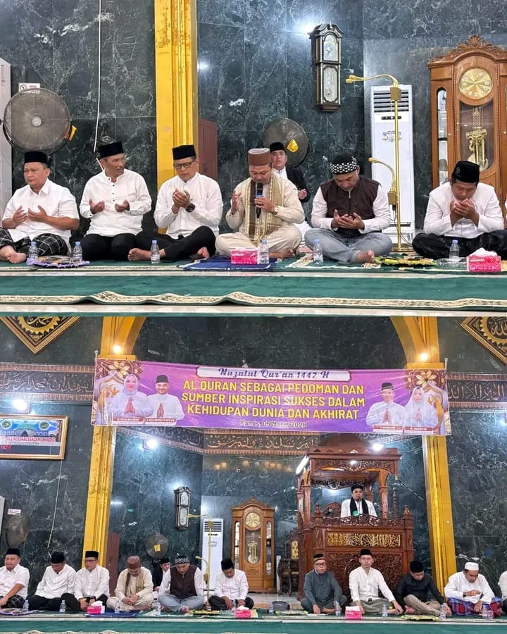 “Selamat memperingati Nuzulul Qur’an 1447 Hijriyah. Semoga dengan peringatan ini akan memberikan manfaat bagi kita dalam upaya meningkatkan kualitas keimanan dan ketakwaan kepada Allah SWT, sekaligus menguatkan semangat dan tekad kita untuk mewujudkan Musi Rawas MANTAB (Maju, Mandiri, Bermartabat) dan Berkelanjutan,” ujarnya.