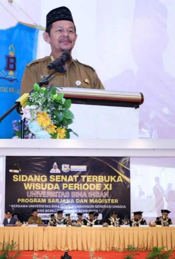 Domainrakyat.com/LUBUK LINGGAU – Wali Kota Lubuk Linggau, H. Rachmat Hidayat yang diwakili Staf Ahli III Bidang Kemasyarakatan dan Sumber Daya Manusia, Asron Erwandi, menghadiri sidang senat terbuka wisuda periode XI sarjana dan magister Universitas Bina Insan. Kegiatan tersebut berlangsung di Ballroom Hotel Dewinda, Kota Lubuk Linggau, Selasa (14/4/2026).
