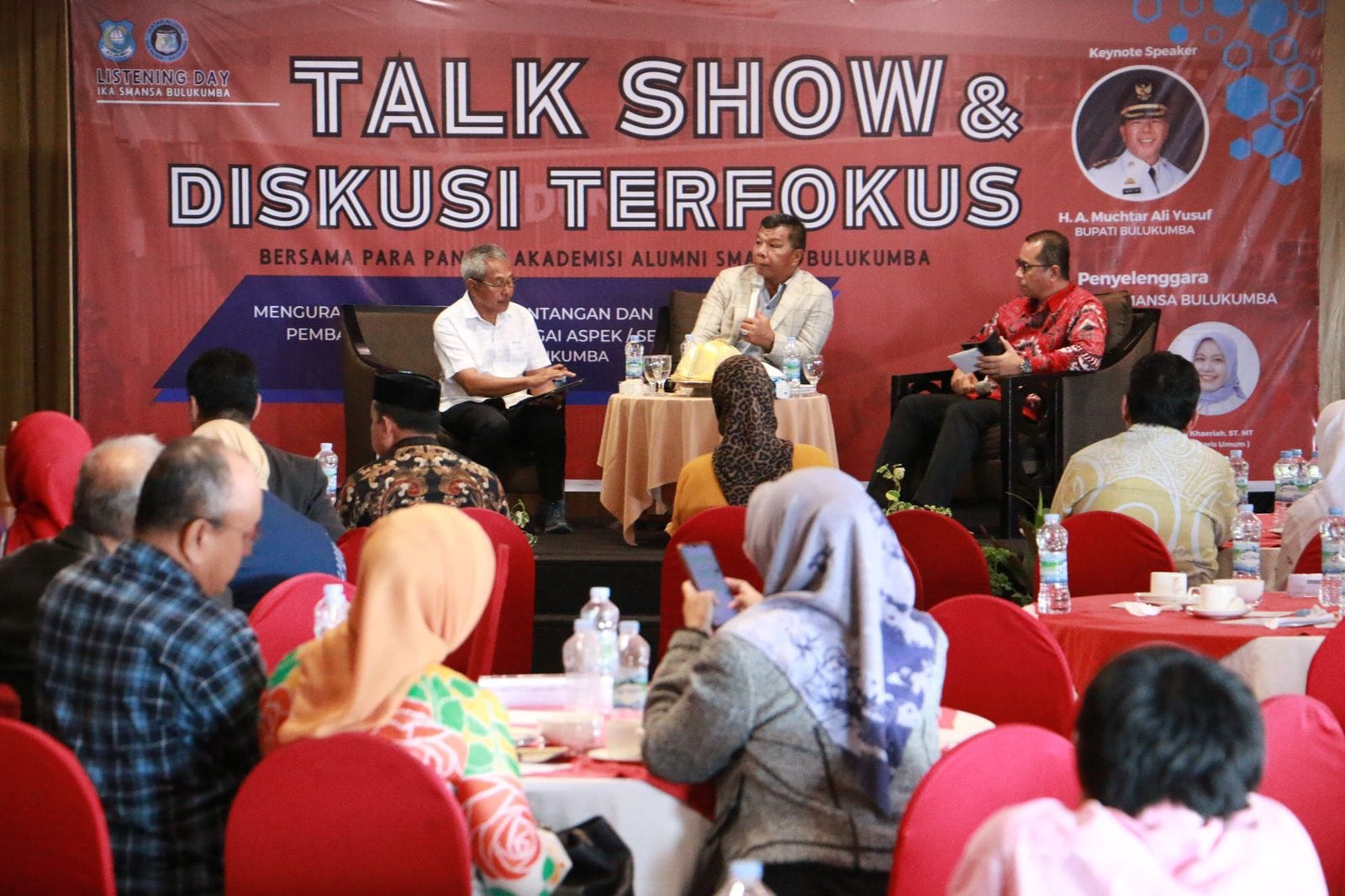 Bupati Andi Utta menyampaikan terima kasih kepada pengurus IKA SMA 1 Bulukumba dan memberikan apresiasi atas terlaksananya Talk Show dah Diskusi Terfokus Bersama Para Panelis Akademisi Alumni Smansa Bulukumba.