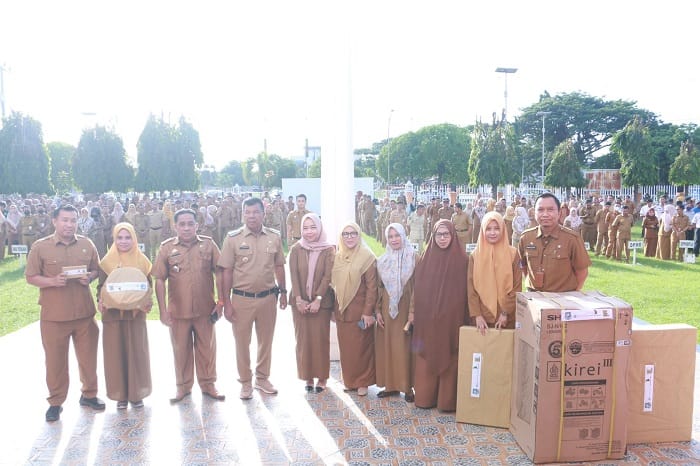 Bulukumba – Sejumlah ASN di Bulukumba mendapatkan hadiah doorprize dalam pengundian Hadiah ASN Digital yang diselenggarakan saat apel gabungan Pemerintah Kabupaten (Pemkab) Bulukumba, Senin (30/12/2024) di depan Kantor Bupati Bulukumba.