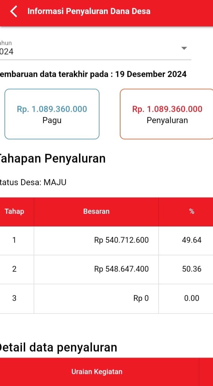 Diduga adanya Indikasi penyimpangan pada pelaksanaan kegiatan dan pengelolaan dana desa tahun anggaran 2024 bangunan fisik dengan pagu dana senilai Rp. 210.190.800,- (dua ratus sepuluh juta sembilan ratus ribu delapan ratus) yang peruntukannya dialihkan pada tahun anggaran 2025 yang dikerjakan pada Minggu malam (26-01-2025) dikarenakan cuaca hujan dilanjutkan keesokan harinya pekerjaan bangunan jalan usaha tani, yang berada di dusun 2 (dua) desa Ulak Kerbau Baru ini dikerjakan.