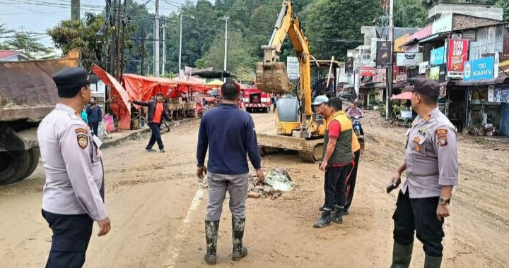 Kapolres Simalungun Pimpin Penanganan Bencana Banjir Bandang dan Longsor di Kota Wisata Parapat
