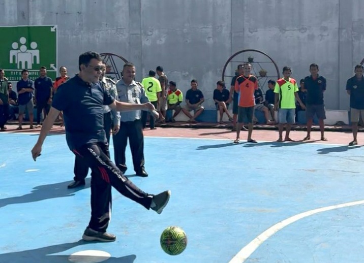 “Kepada para peserta, “saya berpesan agar tetap menjunjung tinggi sportifitas selama bertanding dan menjaga keamanan dan ketertiban”, pesan Kalapas.(S.Hadi Purba)