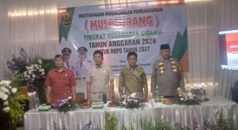 Pemerintah Kecamatan Cidahu menggelar Musyawarah Perencanaan Pembangunan (Musrenbang) tingkat kecamatan Tahun Anggaran 2026 dalam rangka penyusunan Rencana Kerja Pemerintah Daerah (RKPD) Kabupaten Sukabumi Tahun 2027. Kegiatan yang berlangsung di Aula Kecamatan Cidahu, Kamis (12/2/2026), menjadi forum strategis untuk menyerap, merumuskan, sekaligus menyelaraskan aspirasi masyarakat dengan arah kebijakan pembangunan daerah.