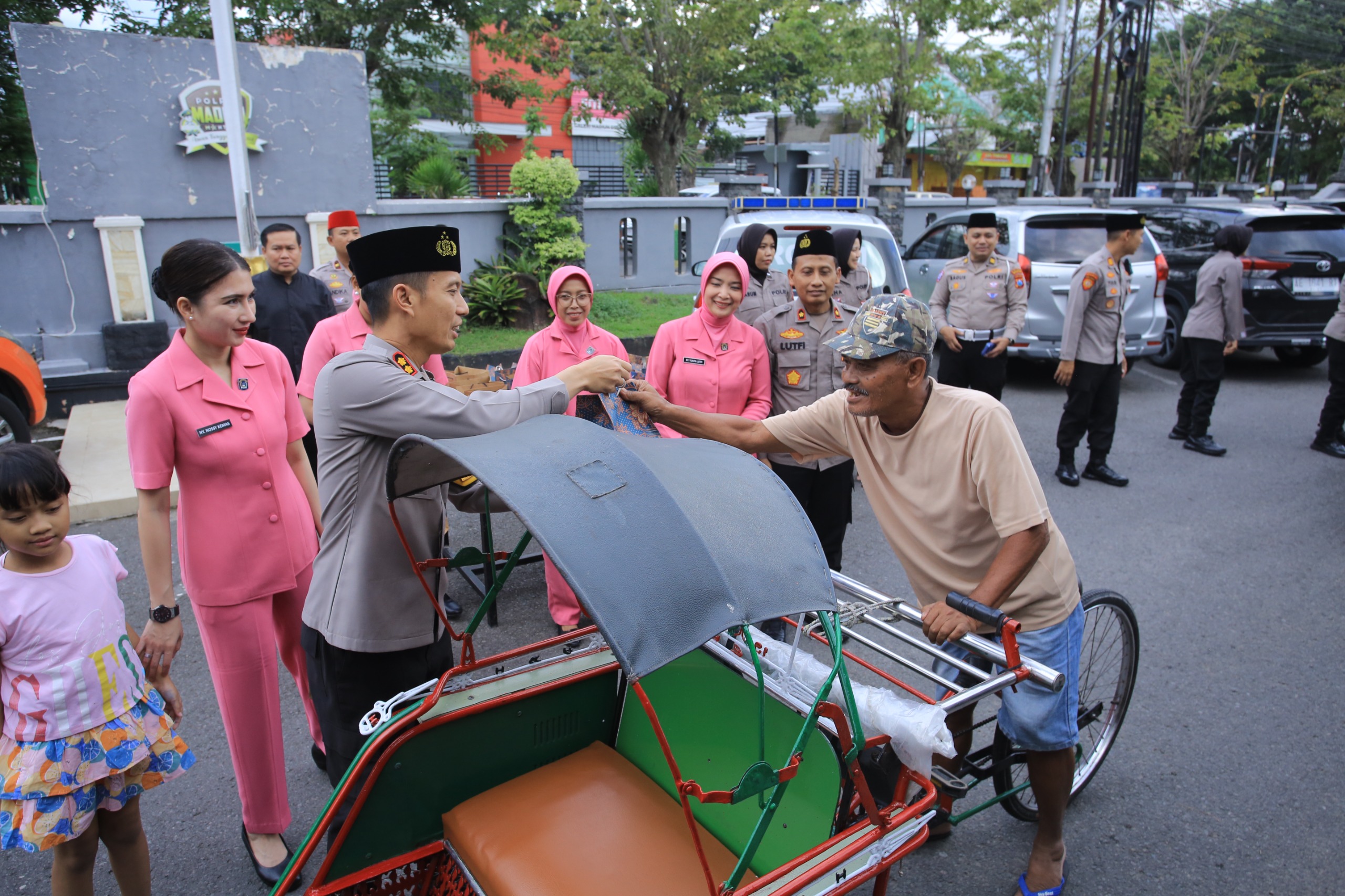 Kegiatan bakti sosial ini dipusatkan di area depan Halaman Mapolres Madiun. Dengan senyum ramah, Kapolres beserta jajaran pengurus Bhayangkari menghampiri para pengendara motor, pengemudi mobil, hingga pejalan kaki yang melintas menjelang waktu berbuka puasa.