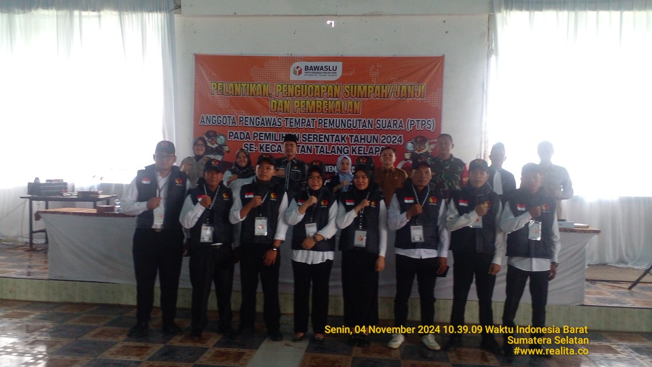 Dengan dilantiknya 210 pengawas TPS ini, Panwascam Talang Kelapa optimis Pilkada 2024 di wilayah tersebut akan berjalan aman, lancar, dan adil bagi semua warga pemilih.