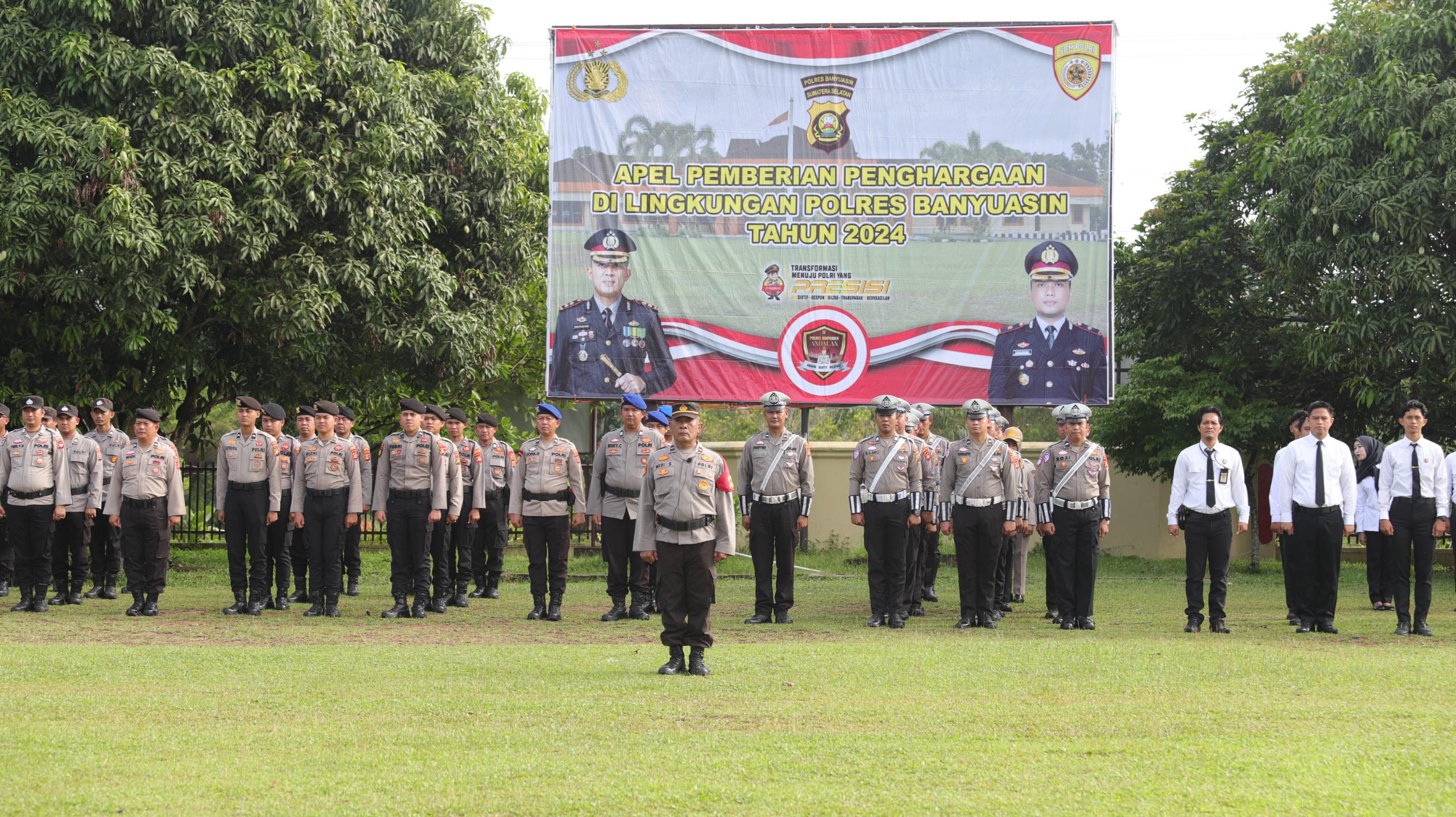 Polres Banyuasin – Kapolres Banyuasin AKBP Ruri Prastowo, SH, SIK, MIK, menggelar apel penghargaan di halaman Mapolres Banyuasin pada Senin pagi, yang dihadiri oleh seluruh anggota Polres Banyuasin. Dalam kesempatan tersebut, Kapolres memberikan penghargaan kepada 18 personel Polres Banyuasin yang dinilai telah menunjukkan prestasi, dedikasi, dan loyalitas yang luar biasa terhadap institusi Polri, 18 November 2024