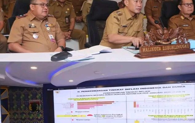 Wali Kota Lubuk Linggau, H. Rachmat Hidayat, mengikuti rapat koordinasi (rakor) pengendalian inflasi tahun 2025 dengan sertifikasi produk halal yang diselenggarakan oleh Kementerian Dalam Negeri (Kemendagri) melalui zoom meeting, yang berlangsung di Command Center Pemkot Lubuk Linggau, Selasa (4/3/2025).
