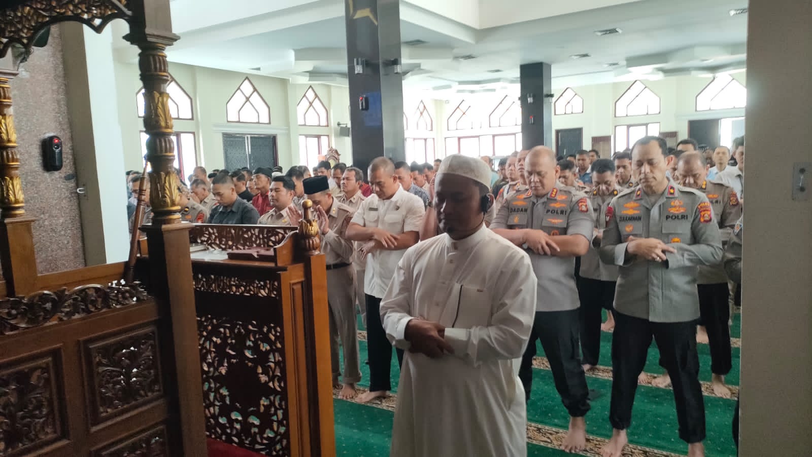 Salat gaib ini berlangsung di Masjid Assaadah Mapolda Sumsel jalan jenderal Sudirman Palembang pada Selasa (18/3/2025) bada sholat Zuhur.
