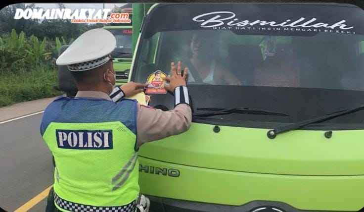 Kemudian, memberikan sosialisasi tagline “mudik aman, keluarga nyaman” serta hotline 110 Polri, serta pemasangan sticker “Mudik Aman, Keluarga Nyaman” di kaca depan maupun kaca belakang kendaraan sebanyak 60 Sticker.