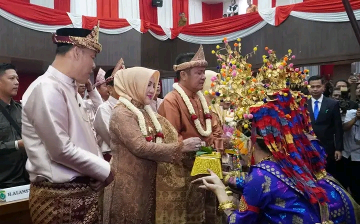 domainrakyat.com-Musi Rawas -Bupati Musi Rawas Hj. Ratna Machmud dan Wakil Bupati Musi Rawas H. Suprayitno menghadiri Rapat Paripurna DPRD Kabupaten Musi Rawas dalam Rangka Hari Jadi Ke- 82 Kabupaten Musi Rawas di Gedung Paripurna DPRD Kabupaten Musi Rawas, Selasa (29/04/2025).