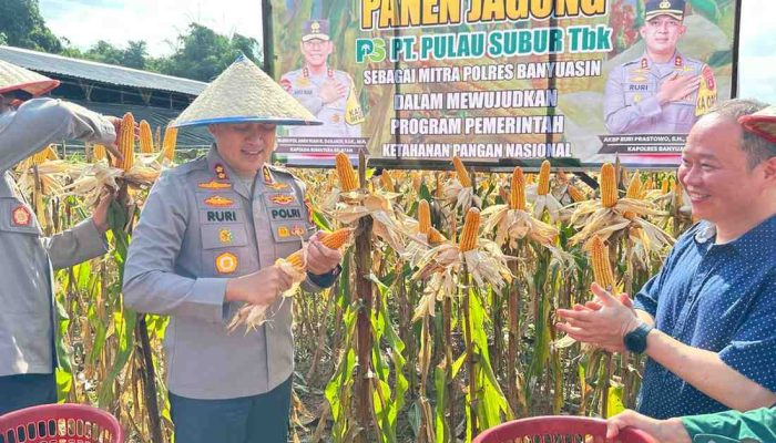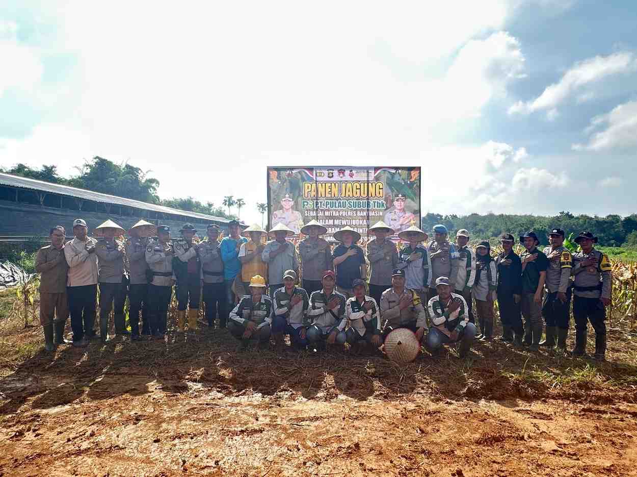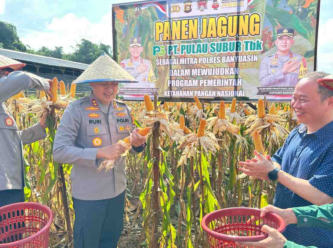 Giat panen dan pemetikan jagung Polres Banyuasin dalam rangka Gugus Tugas Polri mendukung Ketahanan Pangan di PT. Pulau Subur dilaksanakan bersama – sama Kapolres Banyuasin, dengan Forkopimcam Rambutan dan karyawan PT. Pulau Subur.