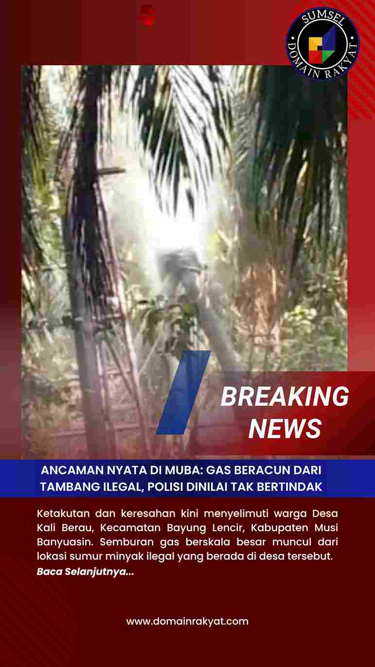 Muba,domainrakyat.com – Ketakutan dan keresahan kini menyelimuti warga Desa Kali Berau, Kecamatan Bayung Lencir, Kabupaten Musi Banyuasin. Semburan gas berskala besar muncul dari lokasi sumur minyak ilegal yang berada di desa tersebut. Ancaman nyata bagi keselamatan warga itu seolah tak dipedulikan oleh aparat penegak hukum dan pemerintah setempat.
