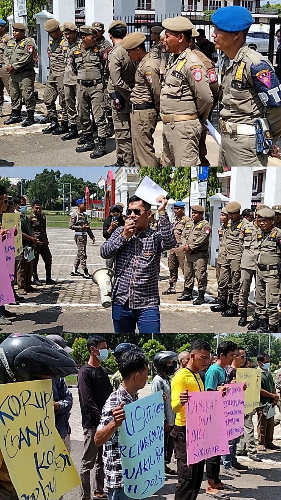 Dalam tuntutannya Hendi, Dari APMPH Sumsel mempertanyakan proyek rehabilitasi rumah dinas Wakil Bupati Banyuasin tahun anggaran 2025 senilai Rp 5 miliar. Proyek itu diduga sudah dikerjakan sebelum proses tender dilaksanakan dan tanpa papan informasi proyek.