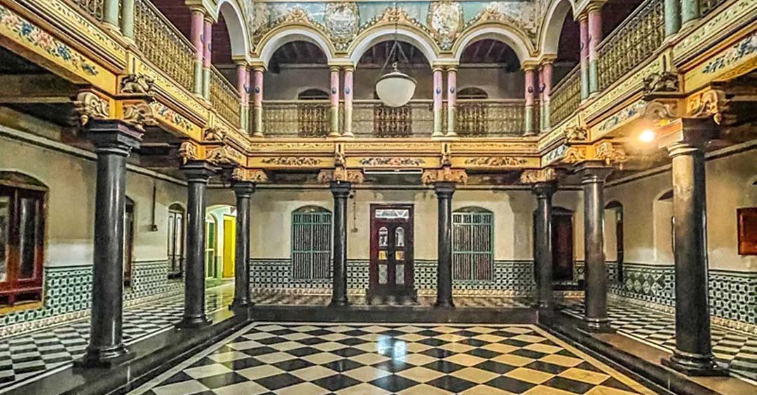 Selanjutnya, saya menuju Bangala , hotel bersejarah pertama Chettinad yang terletak di jantung Karaikudi. Saya ke sana untuk menghadiri kelas memasak Chettinad yang eksklusif , tetapi akhirnya terpesona oleh sejarah rumah besar itu. Bangala memiliki masa lalu yang menarik; rumah itu tidak pernah menjadi rumah keluarga seperti rumah-rumah besar lainnya, melainkan tempat pesta yang dimiliki oleh keluarga kaya Tn. MSMM Chocalingam Chettiar, yang juga disebut keluarga MSMM. Para lelaki dalam keluarga itu menggunakannya untuk menjamu dan menghibur teman-teman lelaki mereka. Perempuan tidak diizinkan di Bangala.